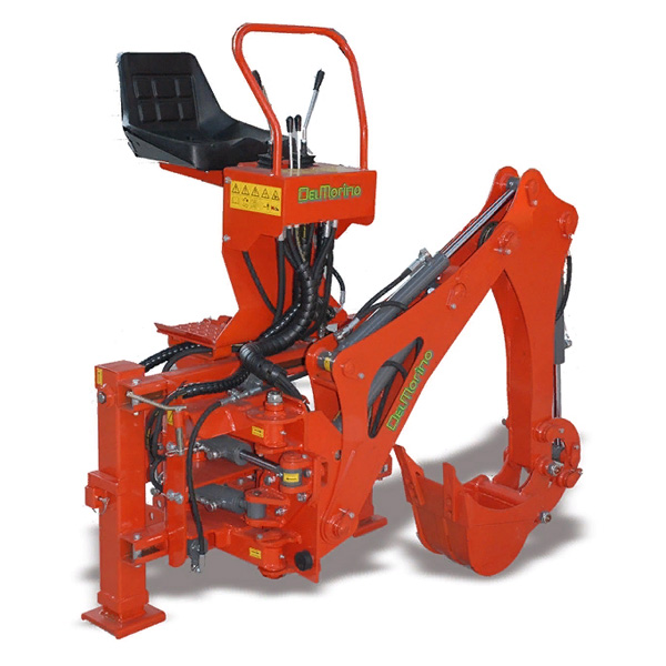 Задний экскаваторный ковш Del Morino RES 30 навесной для тракторов. Поворотная стрела 180 градусов, управляемая двумя гидроцилиндрами. Самосмазывающиеся втулки и закаленные штифты в стандартном комплекте.