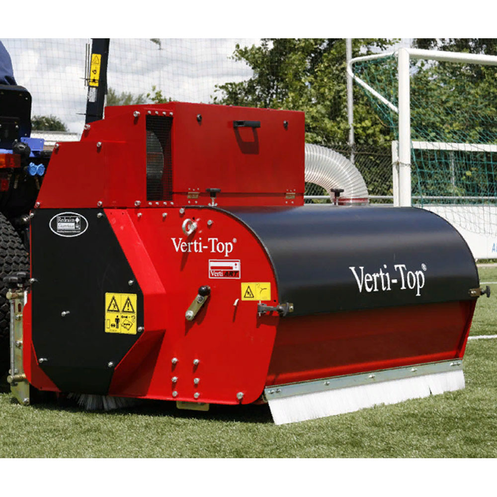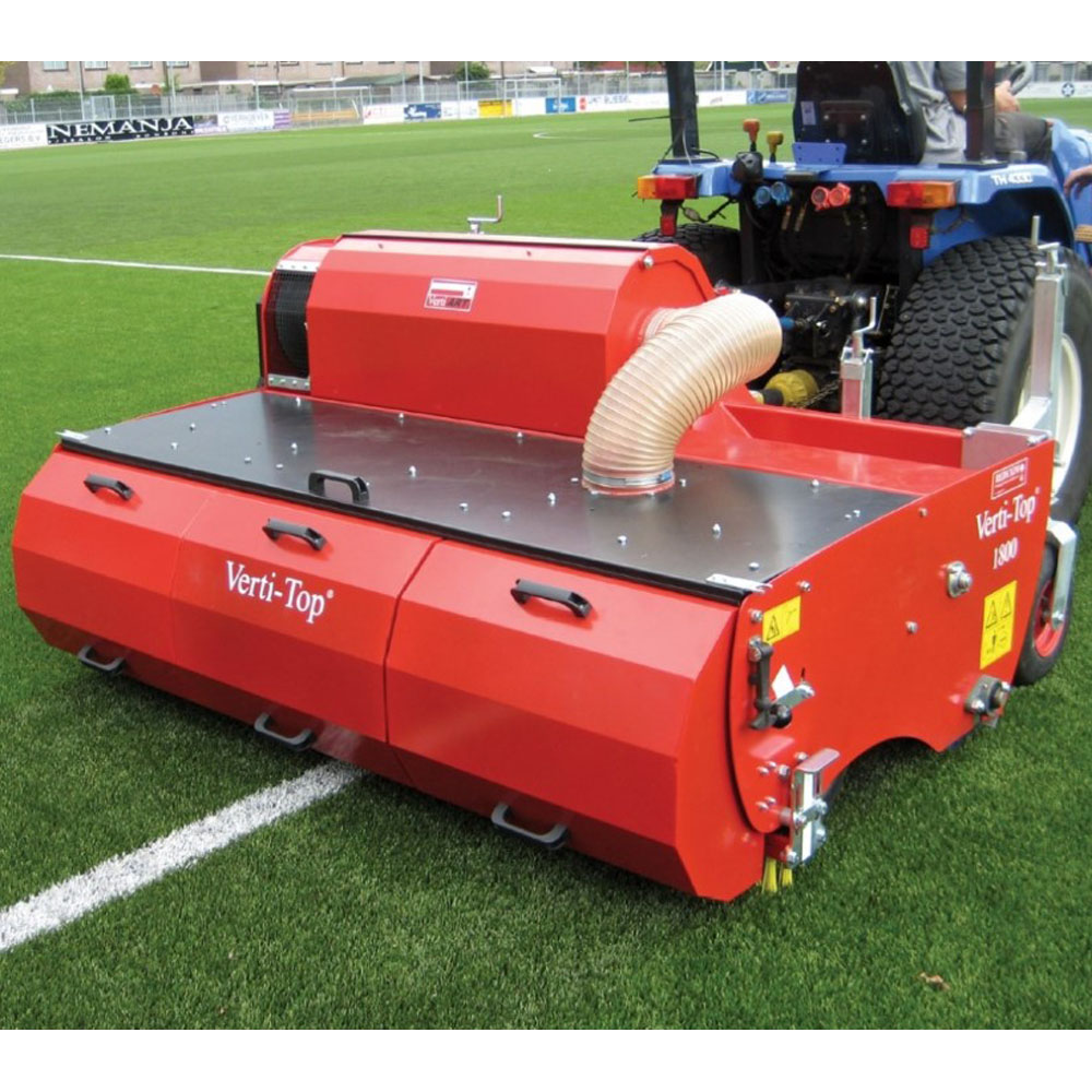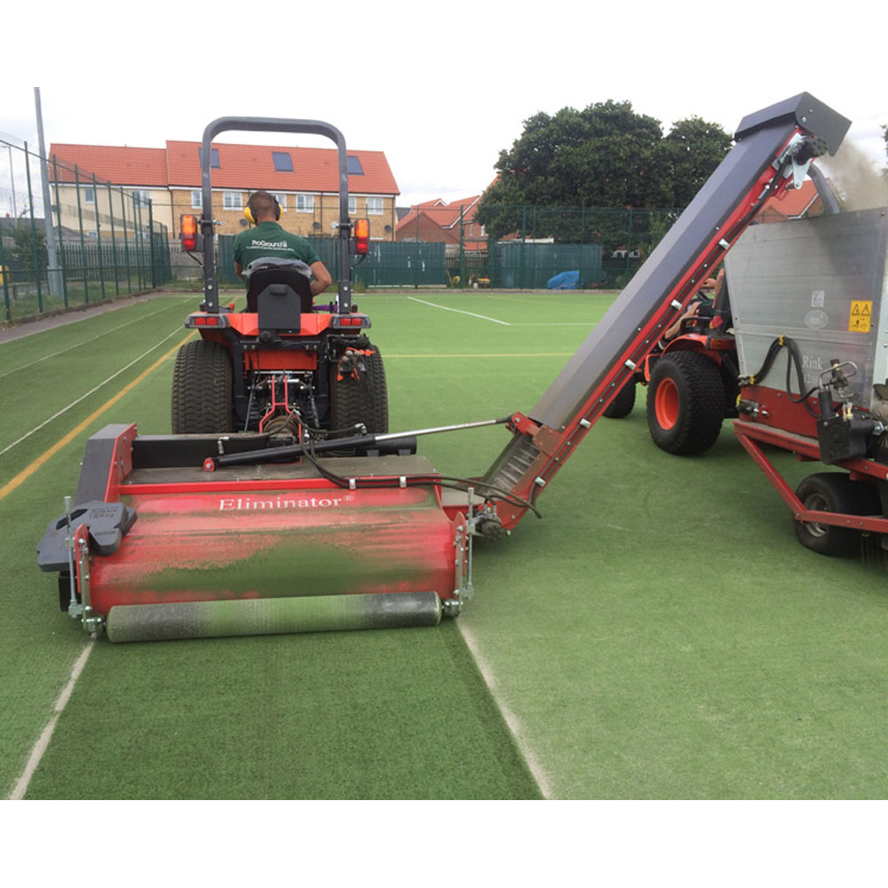 Система лопастных щеток позволяет приподнимать засыпку с поверхности, вместе с загрязнениями. Заполнитель очищается и возвращается на поверхность, а загрязнения с помощью сита попадают в сборочный бункер в задней части агрегата.